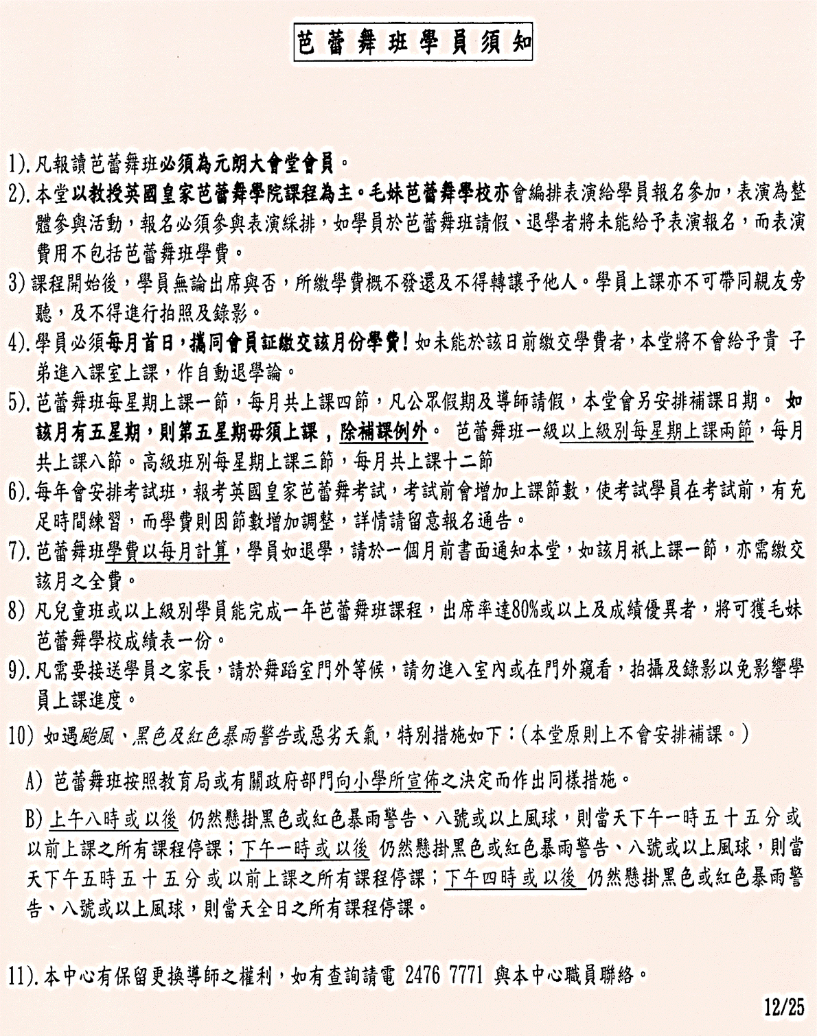 如因上述情況引致停課,本中心原則上不會安排補課;但如有特別情況必須補課,則本堂會另作安排,組員不得異議。 |
