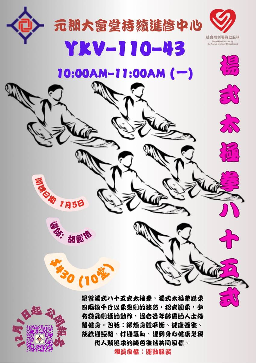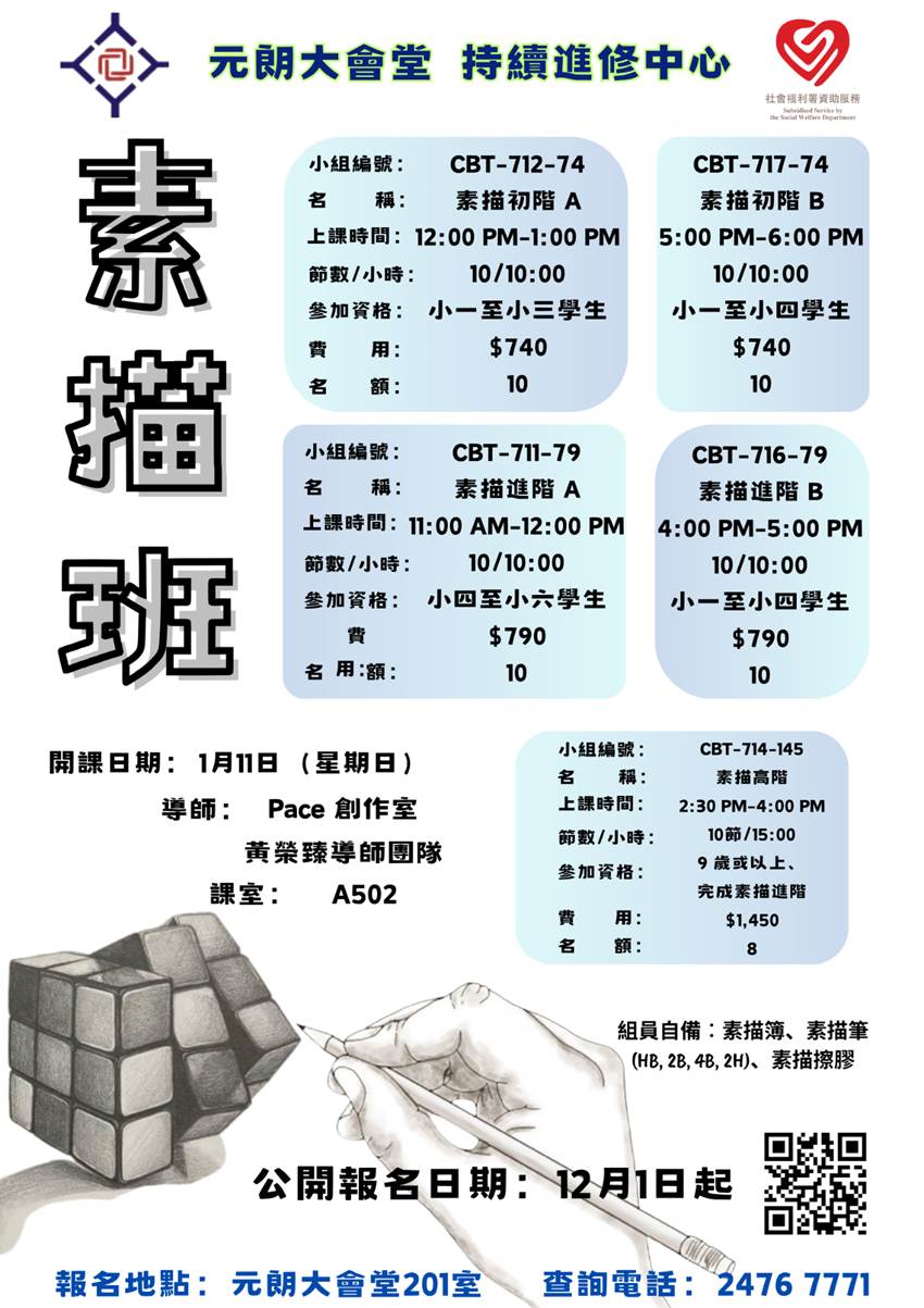 須成為本堂會員 上課地點:元朗 體育路 4號 查詢電話:2476