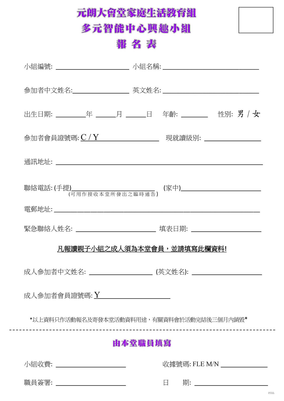須成為本堂會員 上課地點:元朗 體育路 4號 查詢電話:2476 7771 |